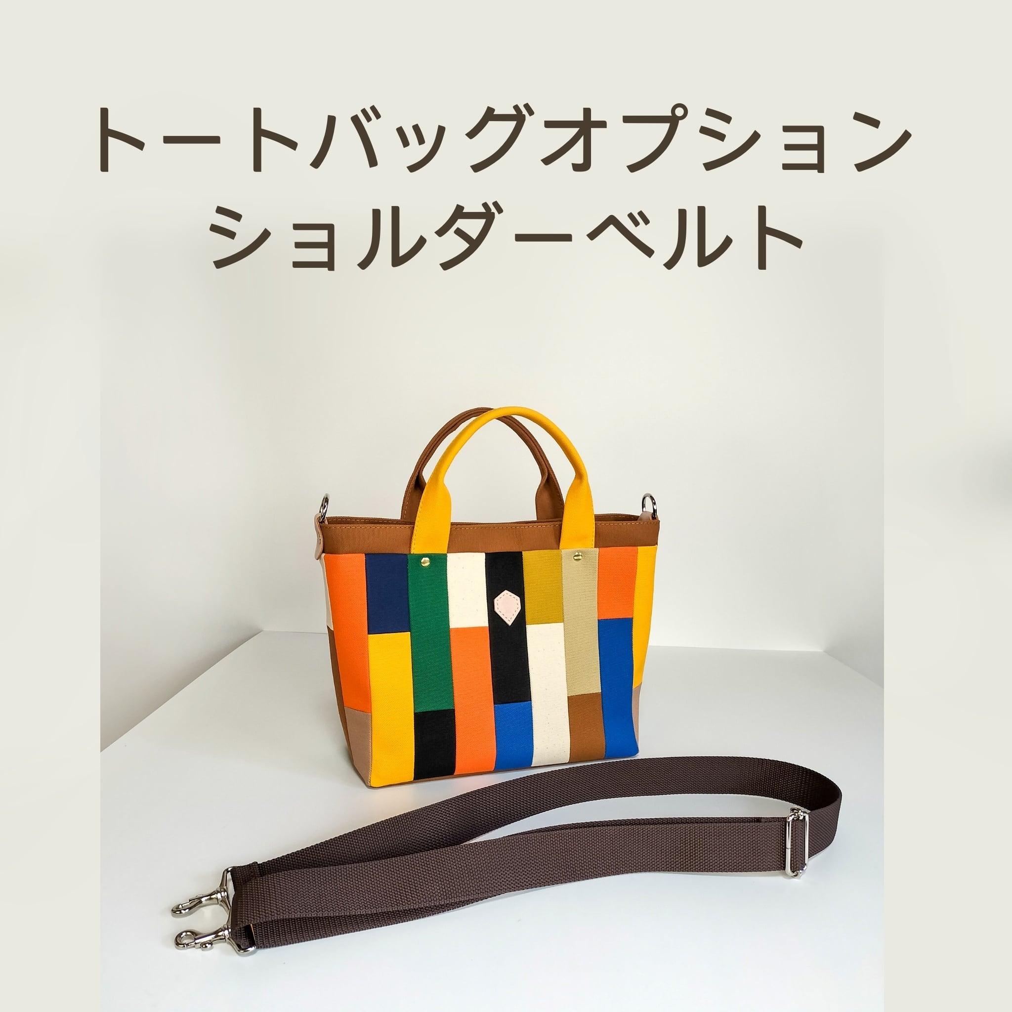 トートバッグにオプションとして取り外し可能なショルダーベルトをお付けします。